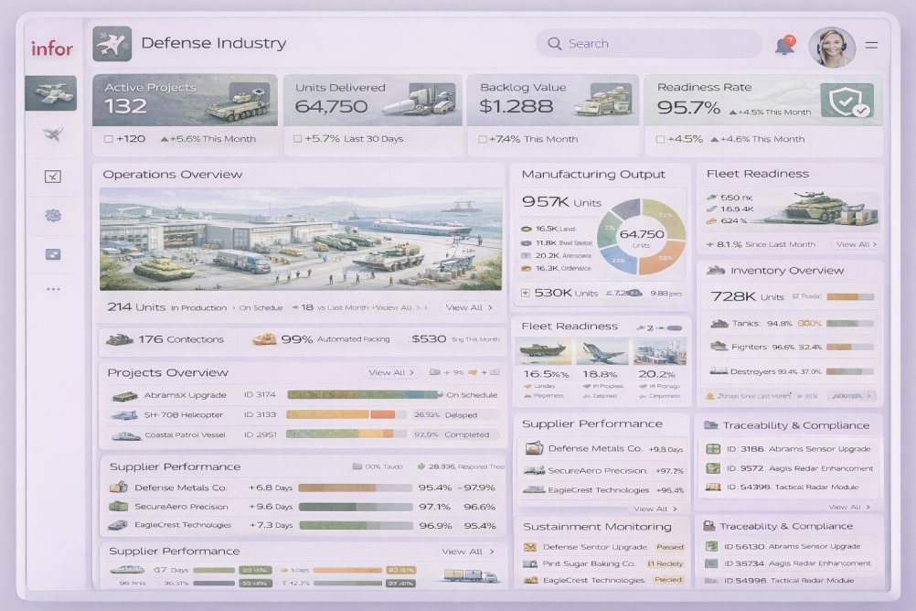 משלב הפיתוח וההנדסה, דרך ייצור ורכש, ועד תחזוקה, תמיכה וניהול פיננסי — Infor מחברת את כלל התהליכים למערכת אחת אחידה, עקבית וברורה.