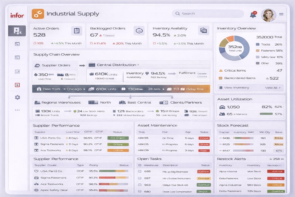 פתרון ERP לאספקה תעשייתית, המסייע לנהל מגוון רחב של פריטים, רכש, מלאי והפצה — בסביבה של תנועה מתמדת ולקוחות חוזרים.