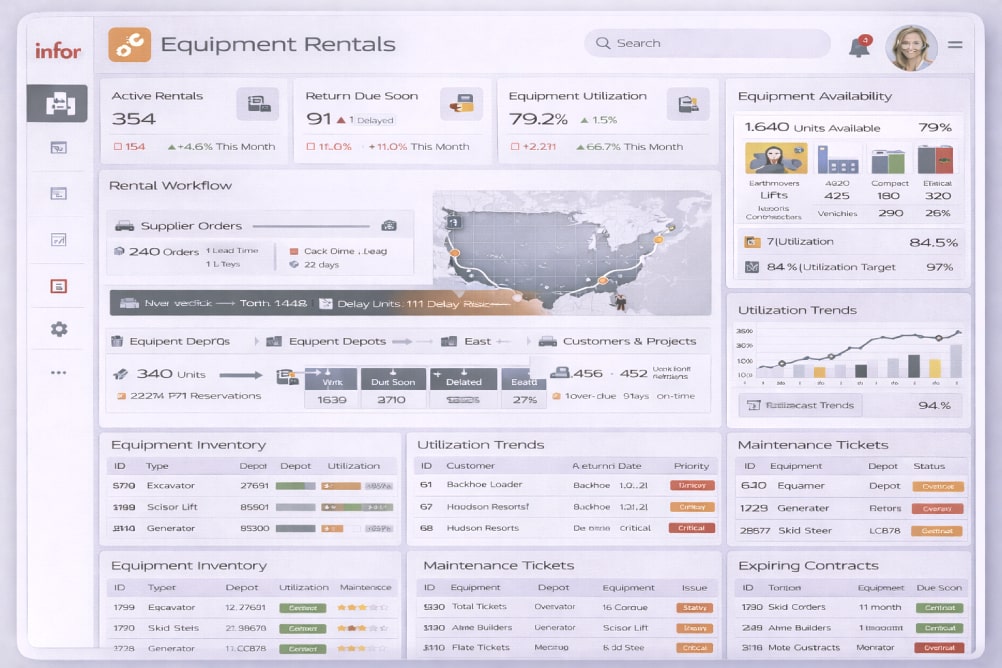 ERP לארגונים העוסקים בהשכרת ציוד, עם ניהול זמינות, חוזים, החזרות, תחזוקה וחיוב — במערכת אחת אחידה.