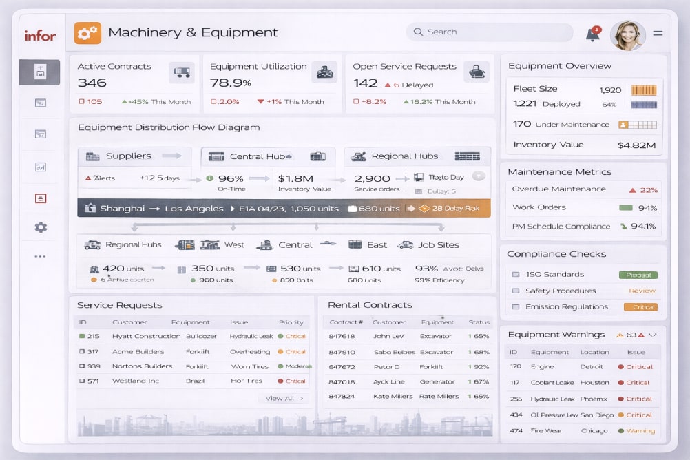 פתרון ERP לארגונים המפיצים מכונות וציוד, עם שליטה במלאי, תיעוד פריטים, זמינות, תחזוקה ותהליכי אספקה מורכבים.