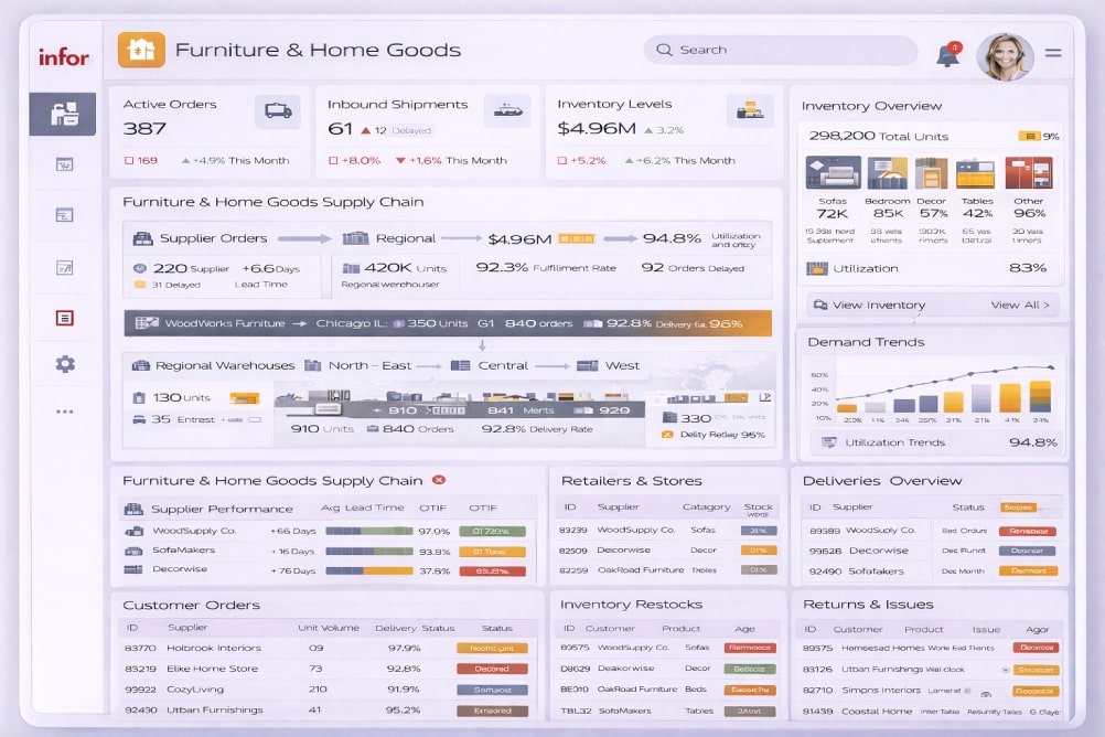 פתרון ERP לארגוני ריהוט ואביזרי בית, המסייע לנהל מלאי, הזמנות, שילוח והרכבות — לאורך כל תהליך האספקה.